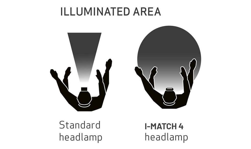 The headlamp provides 250 lumen with a uniform light that illuminates your entire field of view. Compared to the previous model, I-MATCH 4 has an improved user interface for CCT control and sensor activation. In sensor mode, you can easily see when the sensor is activated and turn the light on/off by waving your hand in front of the lamp.